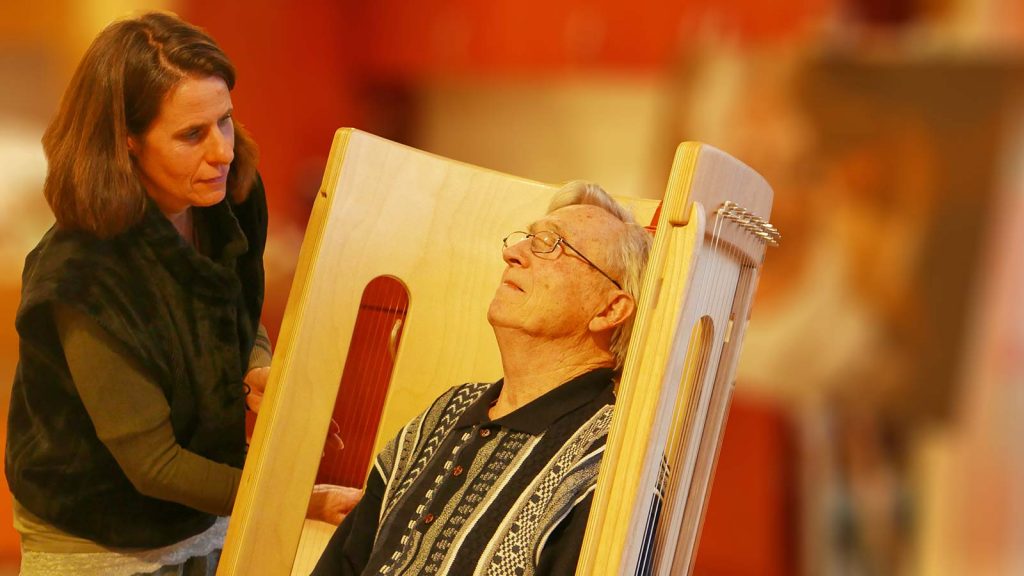 Der Klangschaukelstuhl sorgt auch im Seniorenheim für entspannte Momente