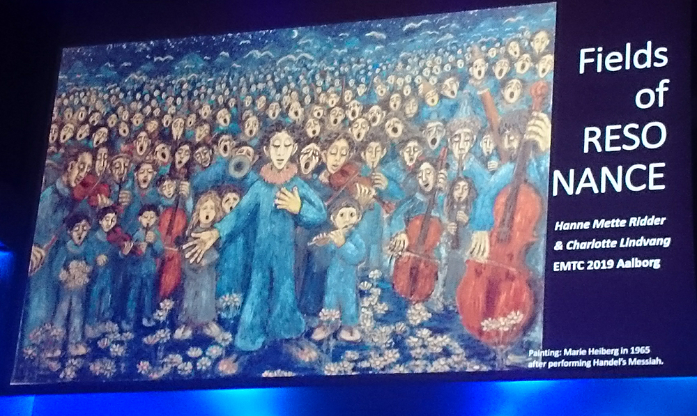 Unter dem Motto „Fields of Resonance“  fand die 11. Europäische Musiktherapie Konferenz vom 26.-30.6.2019 in Aalborg/Dänemark statt.  Das dänische Organisationsteam hat ein äußerst attraktives Programm im neuen Musikkens Hus in Aalborg geboten. Als wir in Aalborg mit unseren Instrumenten und Klangmöbeln für die Begleitausstellung eingetroffen sind,  waren wir schon mal sehr beeindruckt von diesem imposanten Gebäude, das sowohl eine der wunderbarsten Konzerthallen Dänemarks als auch die Universität Aalborg mit dem Studiengang Musiktherapie beherbergt.